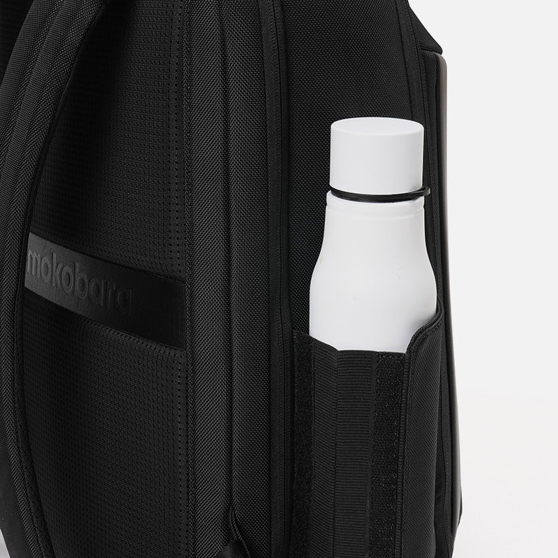 - Side pockets that fit up to a 500ml water bottle.