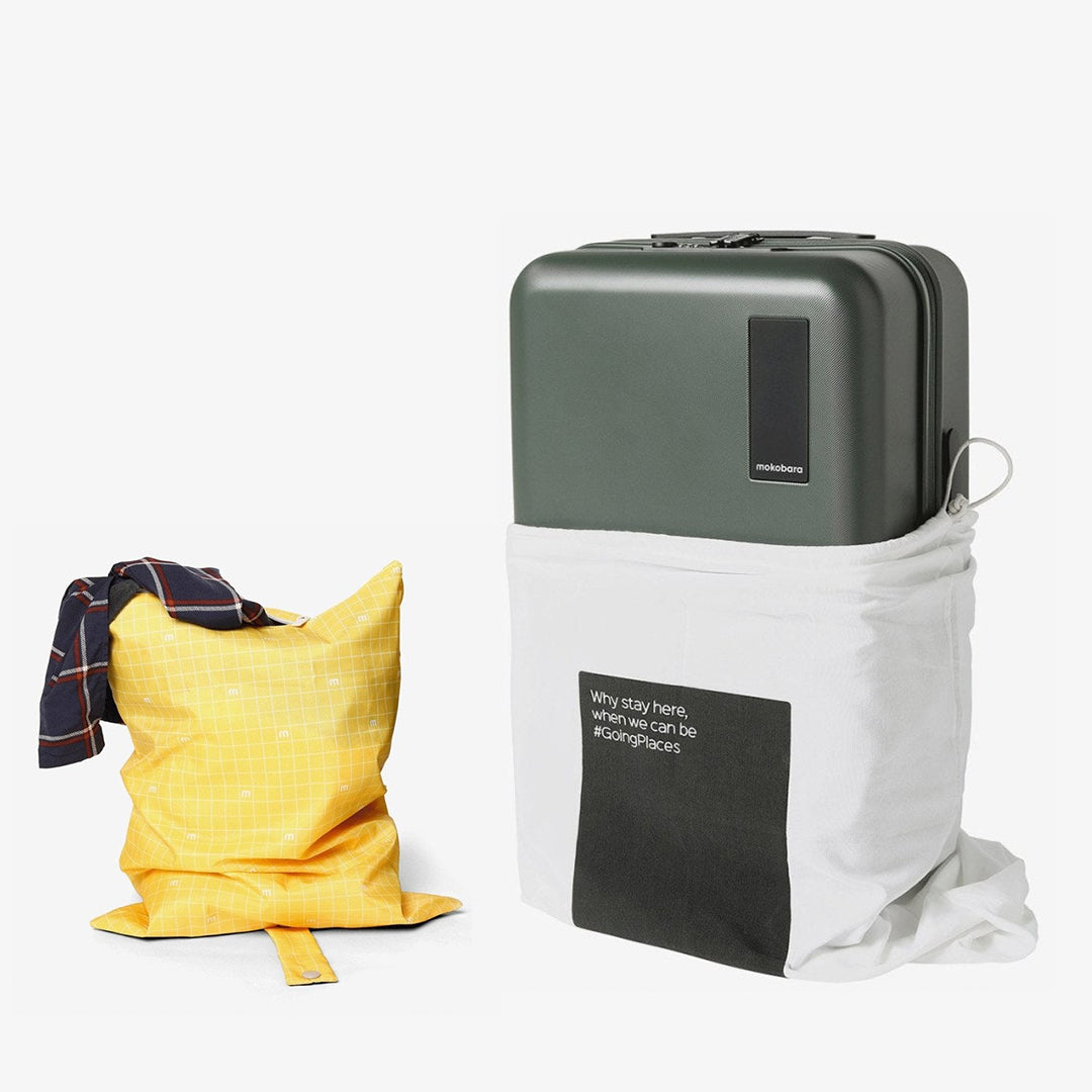 Between uses, slip the dust cover over your luggage before storing it. Use the laundry bag so that your clean clothes and dirty laundry stay totally separate.