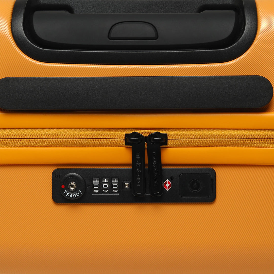 Keyless TSA Lock security. This lock does not require a key for you to unlock. Simply push the latch towards the numbers to unlock. Instructions to set your lock code will be inside the luggage.