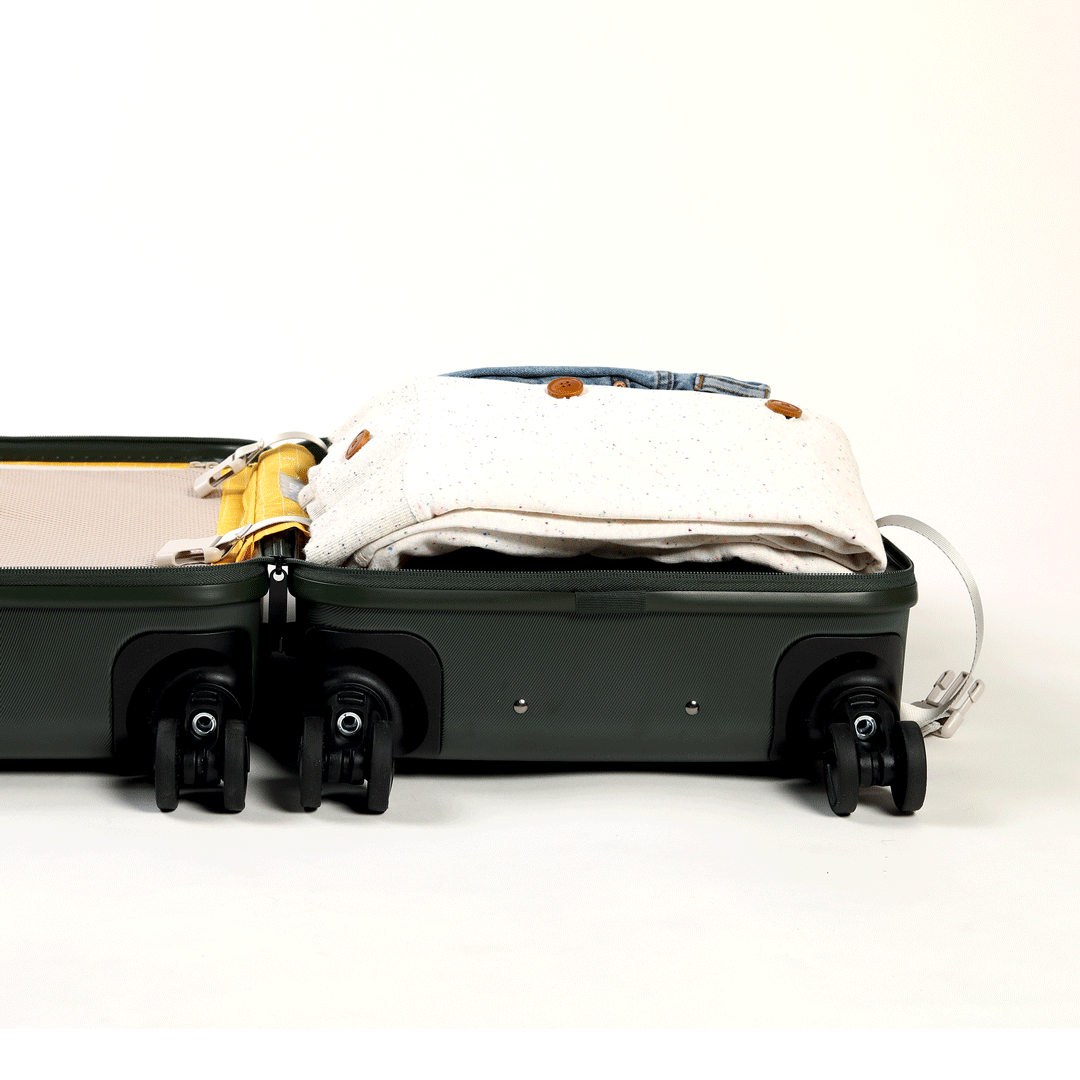 Cram in a week’s worth of clothes with a little help from our inbuilt compression system.