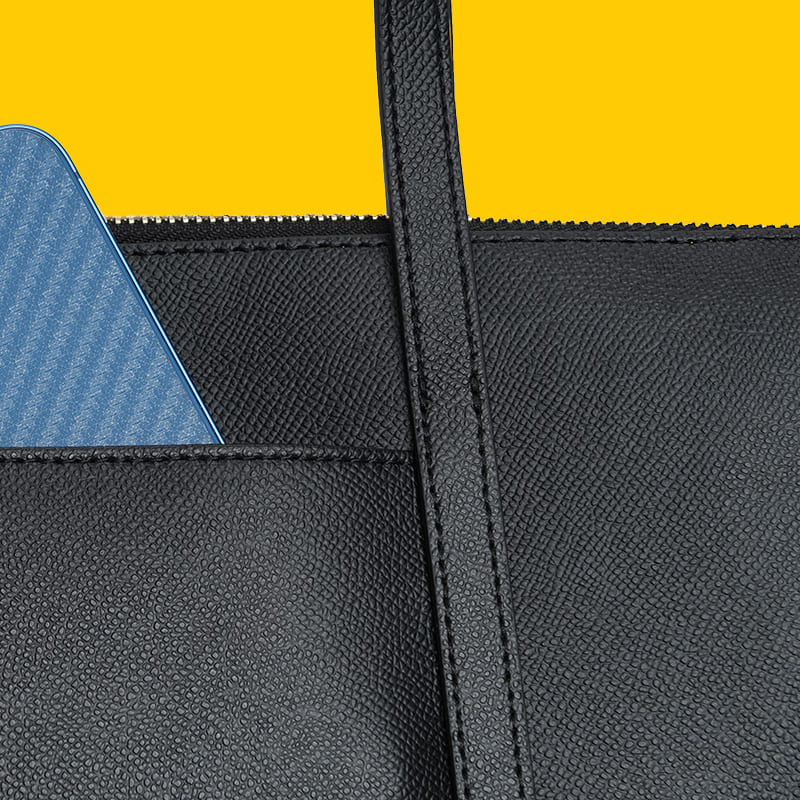 - Interior organisation system with a zippered pocket, a tech sleeve and a divider pocket.
