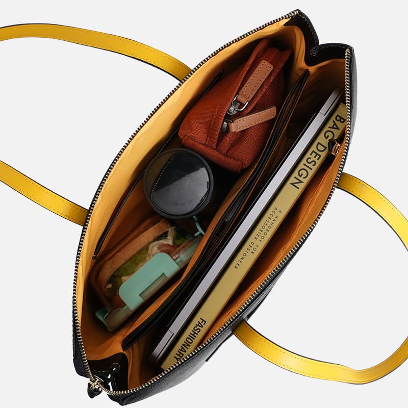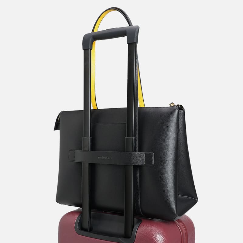 - Vegan leather trims on the drop handles to ensure easy carrying.