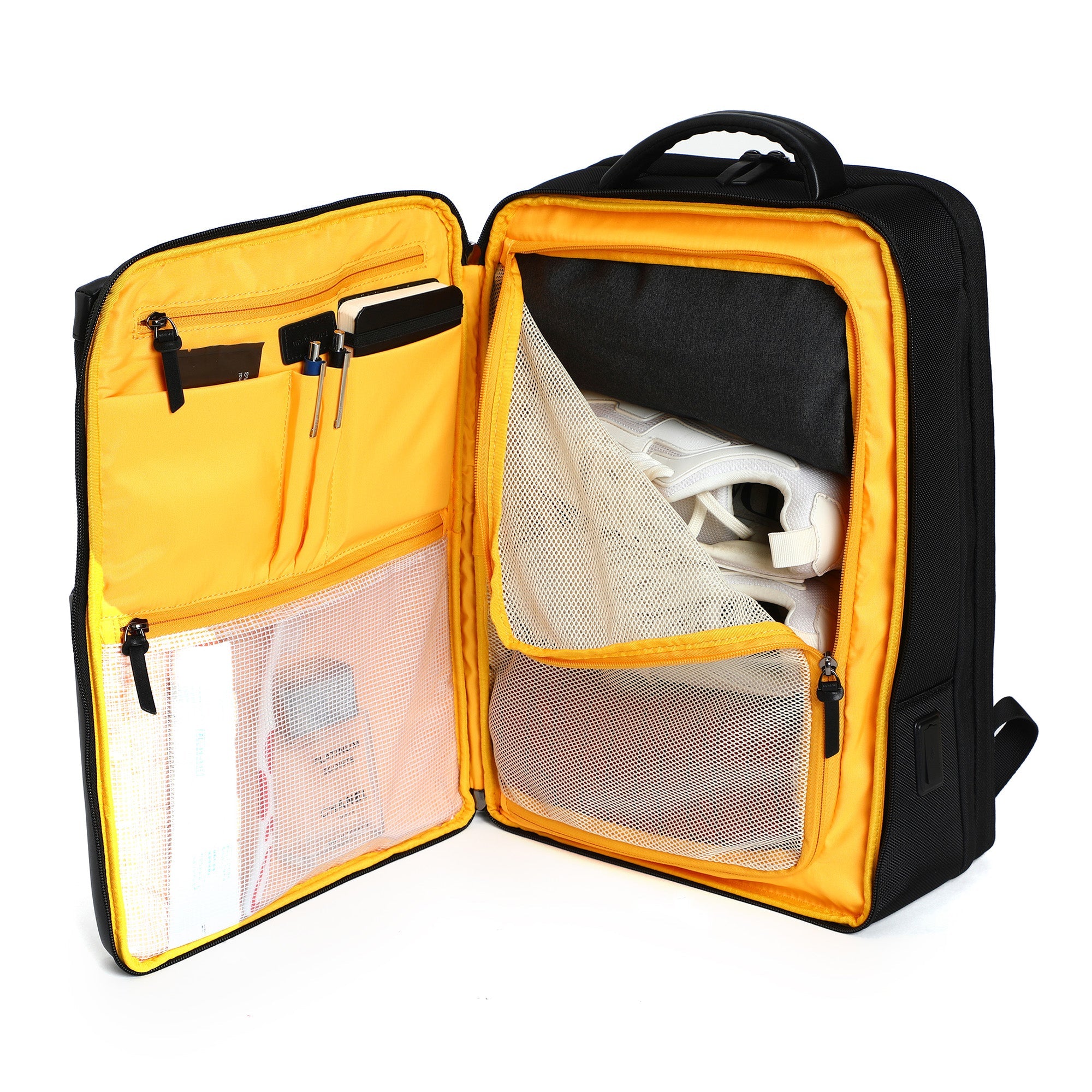 - Charge your phone on-the-go by plugging in to the USB port. Simply plug your power bank from the inside and be always on charge!