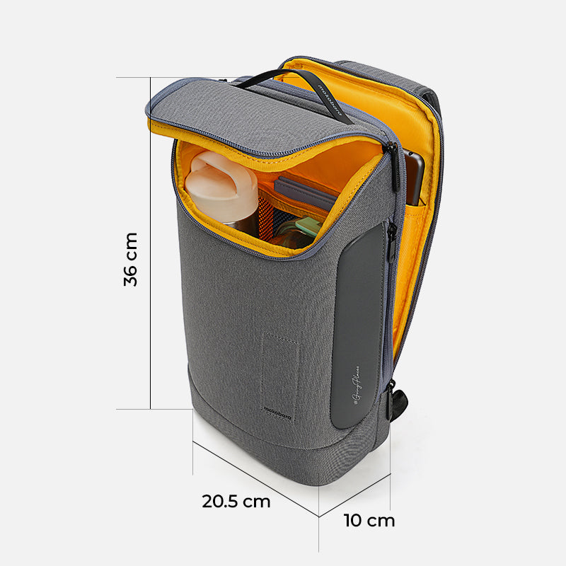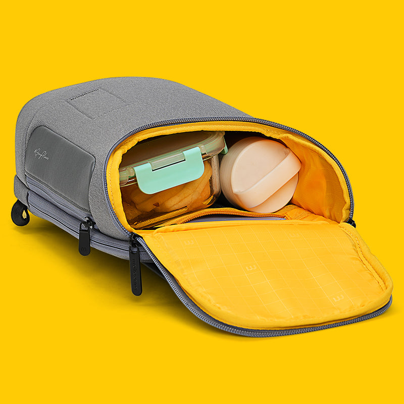 - You can stow your umbrella, phone, fruity sanitizer and munchies in the front bucket pocket.