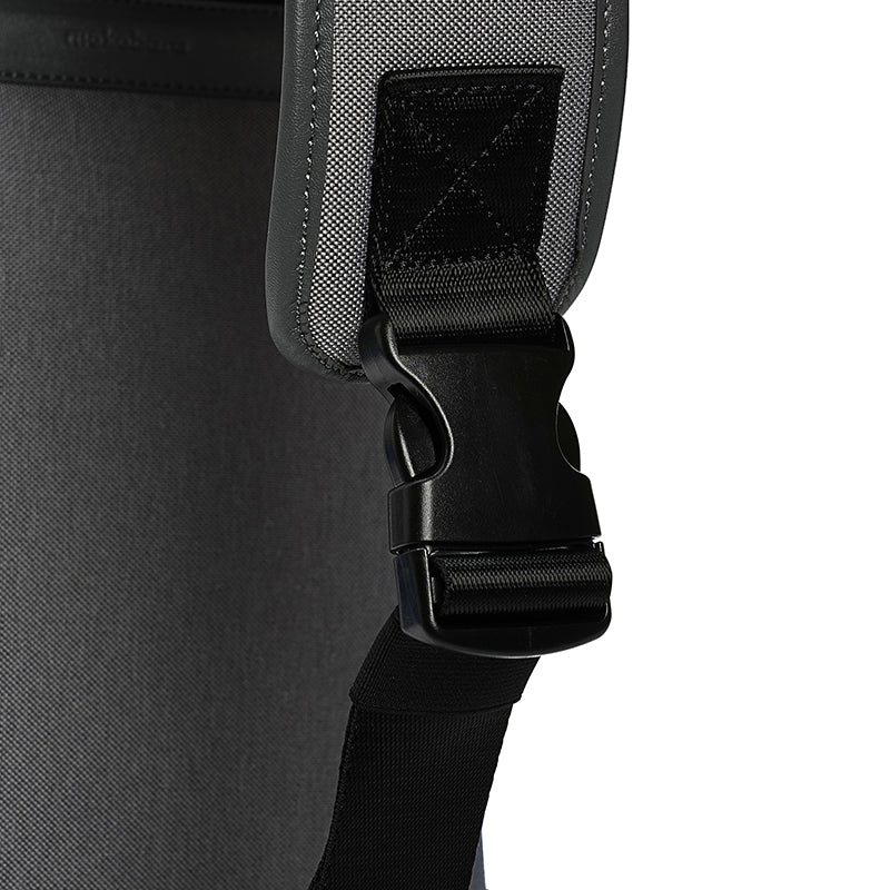 - Padded shoulder strap with a buckle that easily adjusts the length.