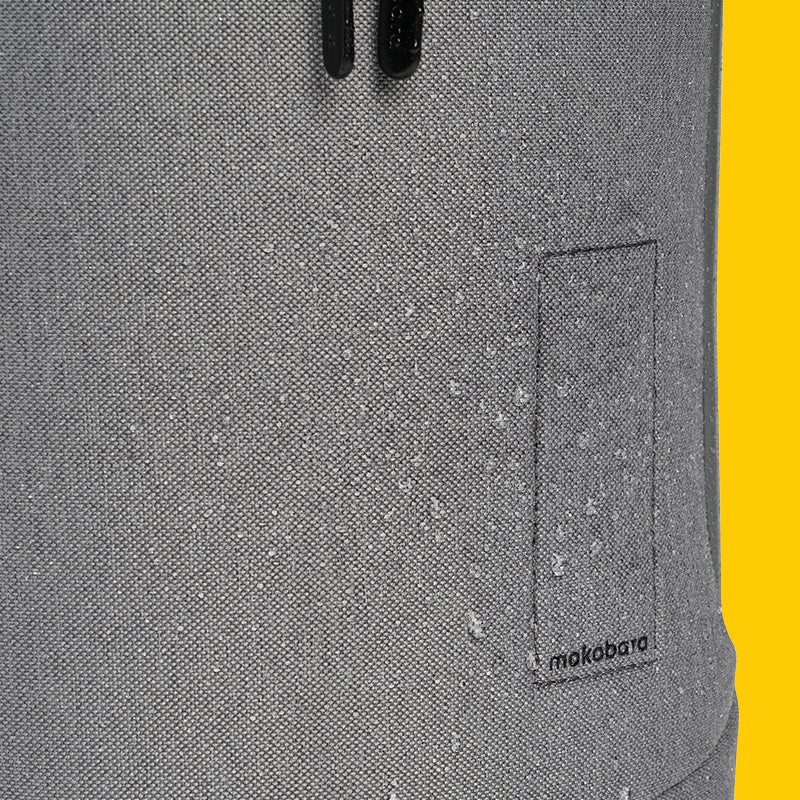 - Crafted with premium water resistant fabric and vegan leather trims.